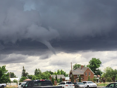 This is a picture I found on FB of the first funnel cloud that came down. This was taken by a lady from Colorado who was driving west on 491 towards Monticello so it's a reverse of what we saw looking east, but its the same funnel cloud. It looks to me like it touched down or came very close to it.